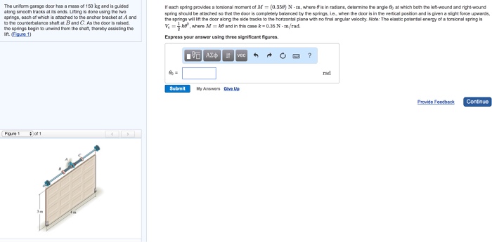 Problem 18 51 7 of 8 review the uniform garage door has a mass of 150 kg and is guided along smooth tracks at its ends.